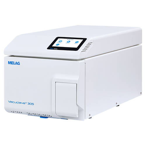 Vacuclave 305 beschleunigt Ihren Arbeitsablauf mit Rekord-Zykluszeiten ab 6,5 Minuten (plus Trocknung) und intelligenten Technologien für perfekte Trocknungsergebnisse und lückenlose Chargenrückverfolgung. Der Vacuclave 305 wurde bei MELAG in Berlin bis ins kleinste Detail für eine hohe Leistung entwickelt. Mit einer Kammergröße von 5 Litern und einer Gerätebreite von nur 30 cm passt der schnellste Autoklav der Welt in jede Aufbereitungslinie: Entweder als Ergänzung zu Ihrem herkömmlichen Autoklaven für die blitzschnelle Sterilisation zwischen den Behandlungen oder als Stand-alone-Gerät für kleinere Instrumentenmengen.